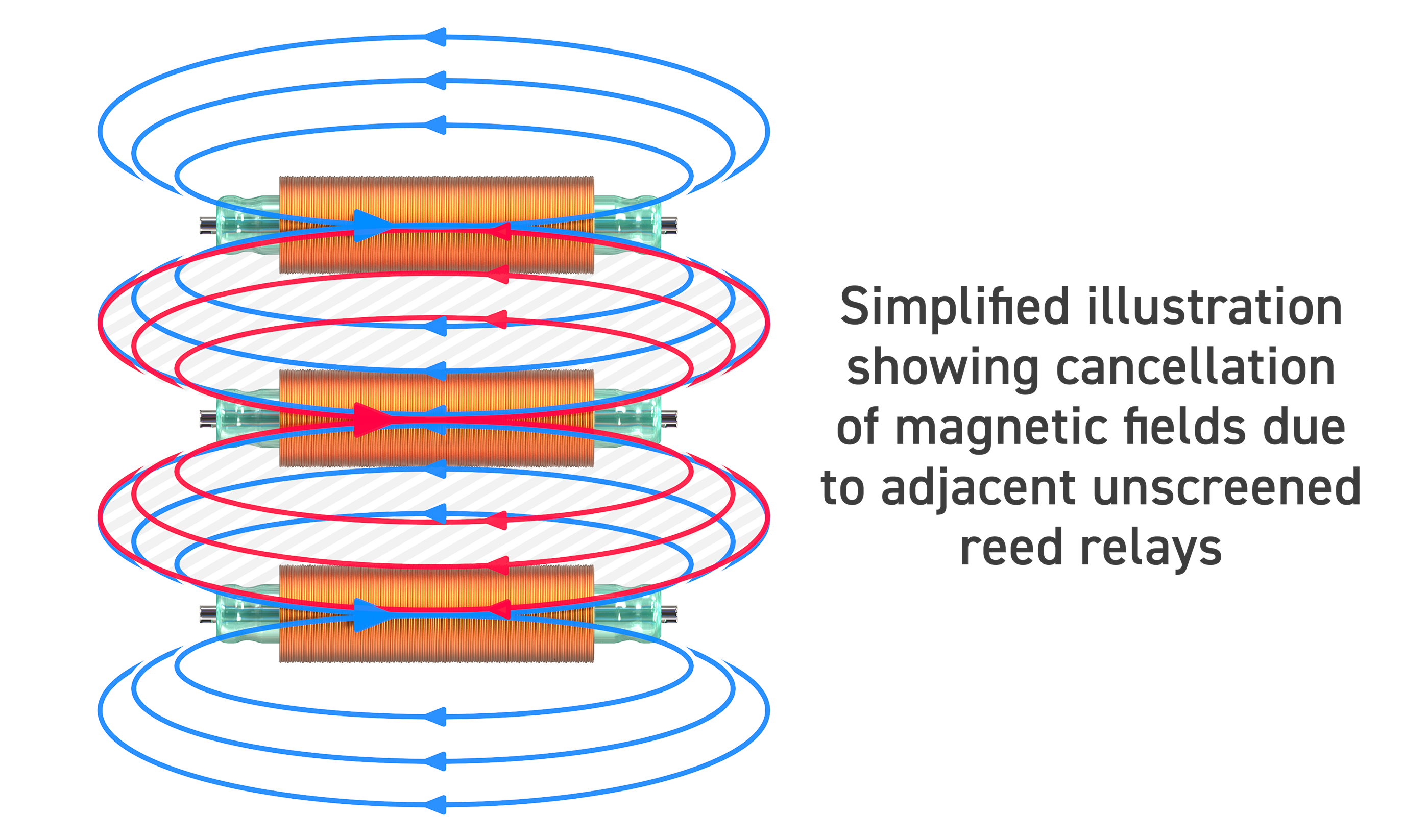 Magnetic screening is absolutely essential for reed relays mounted on a close pitch to eliminate magnetic interaction issues.
